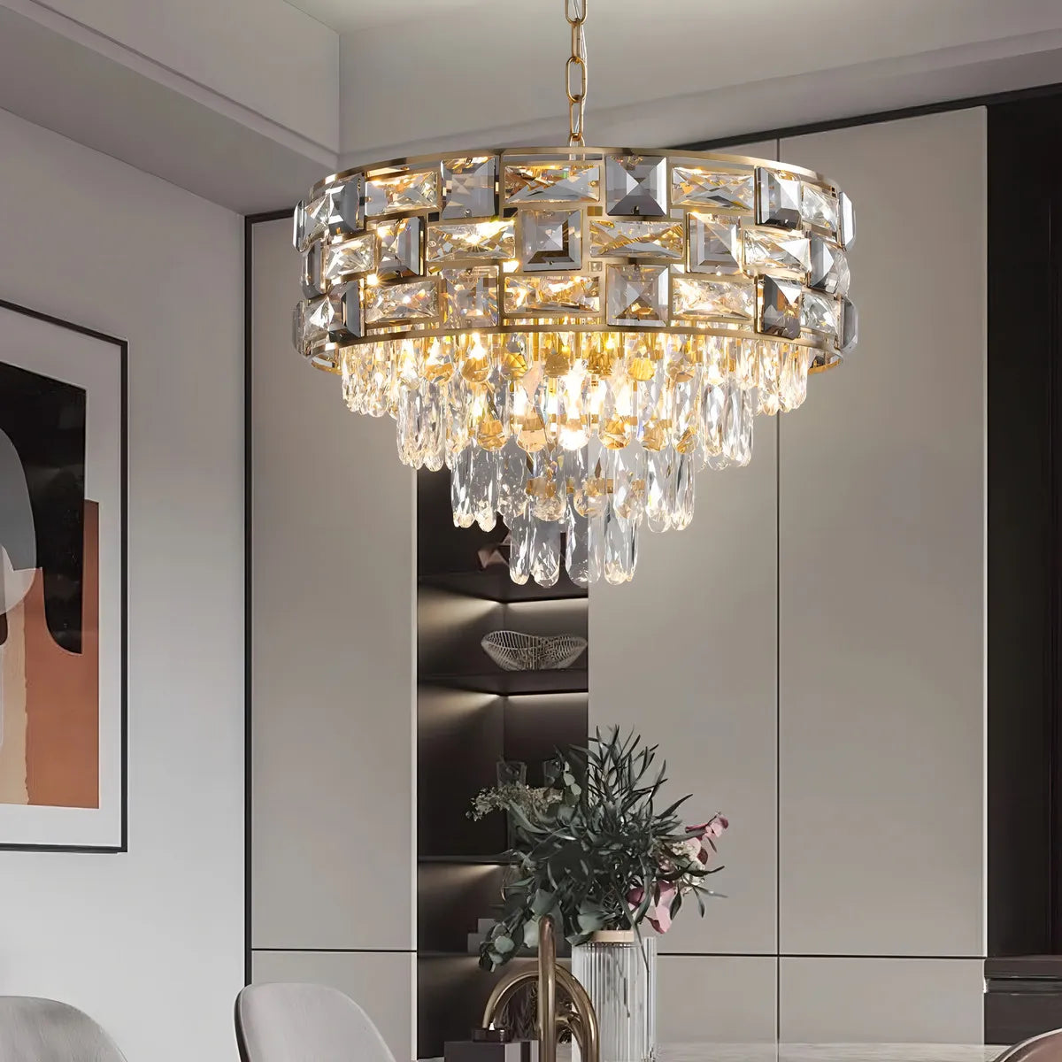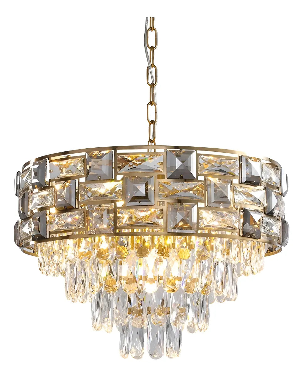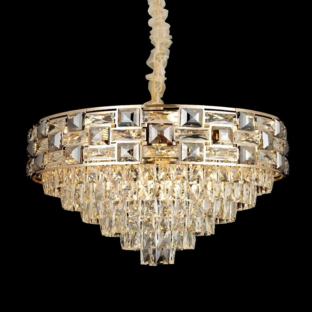 El candil está fabricado con acero de alta calidad y cristal K9, garantizando su durabilidad y resistencia. Su formato de techo y su alimentación por corriente eléctrica hacen que sea fácil de instalar y usar.