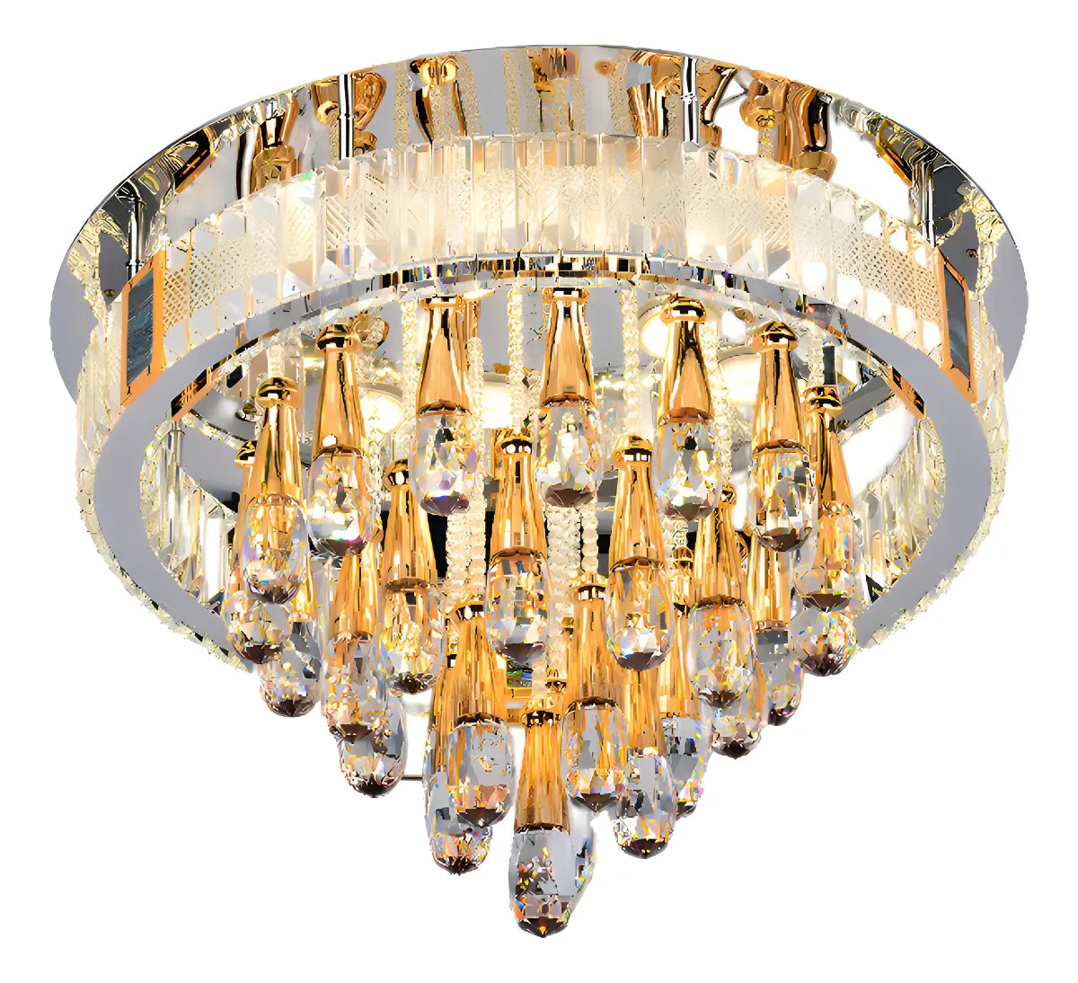 Este Candil Dorado con Platedo es una adición lujosa para cualquier hogar, fabricado con materiales de alta calidad.