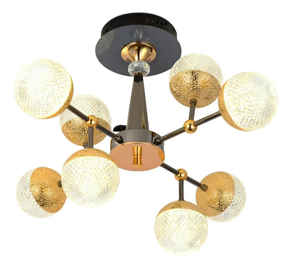 - Capacidad de Iluminación: Con capacidad para 8 focos, esta lámpara proporciona una iluminación brillante y efectiva, perfecta para ambientes interiores.