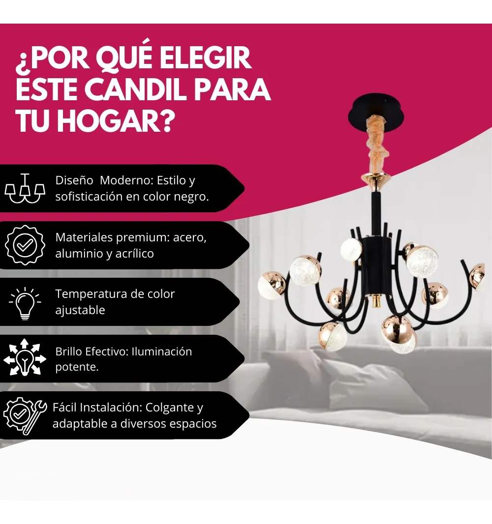 - Diseño Nórdico Moderno: Esta lámpara candil LED de techo en color negro combina un diseño nórdico contemporáneo con materiales de alta calidad, ideal para añadir un toque de lujo y sofisticación a cualquier espacio interior.